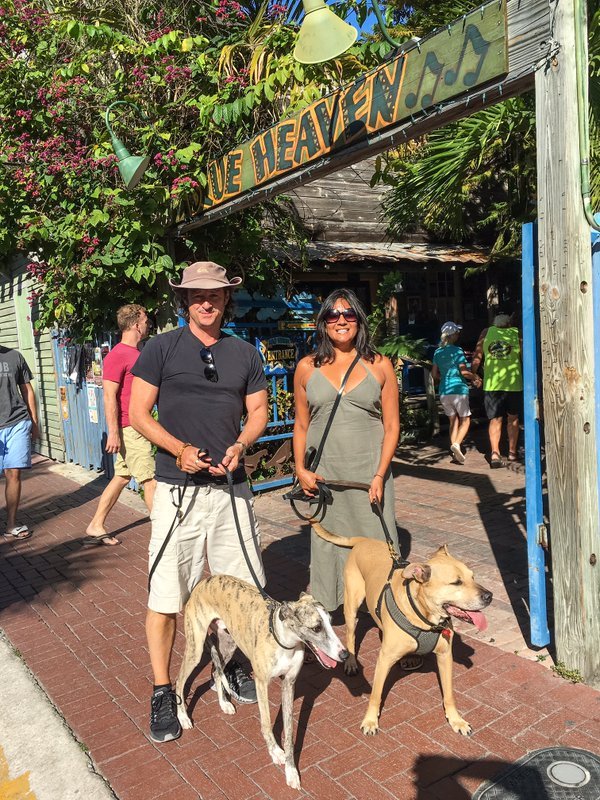 Me and Vijaya taking the dogs to brunch at Blue Heaven