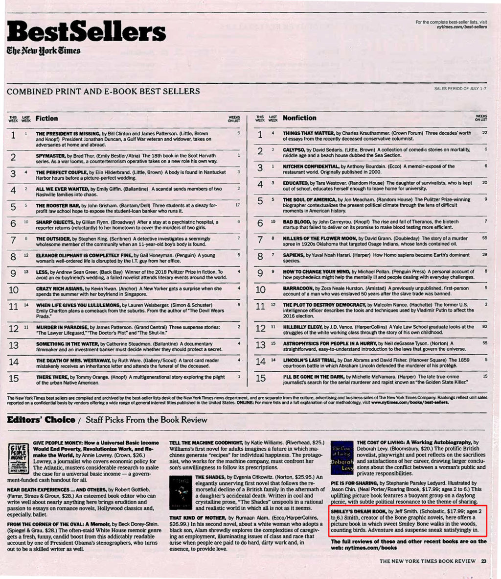 The New York Times Book Review has named SMILEY’S DREAM BOOK an Editor’s