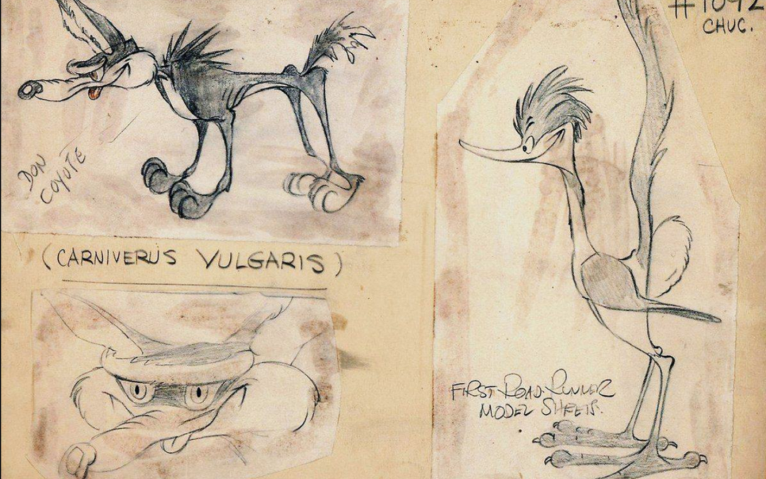 Earliest known drawings of Wile E. Coyote and the Road Runner by Chuck Jones, circa 1945. Thanks to HistoryInPictures for the images