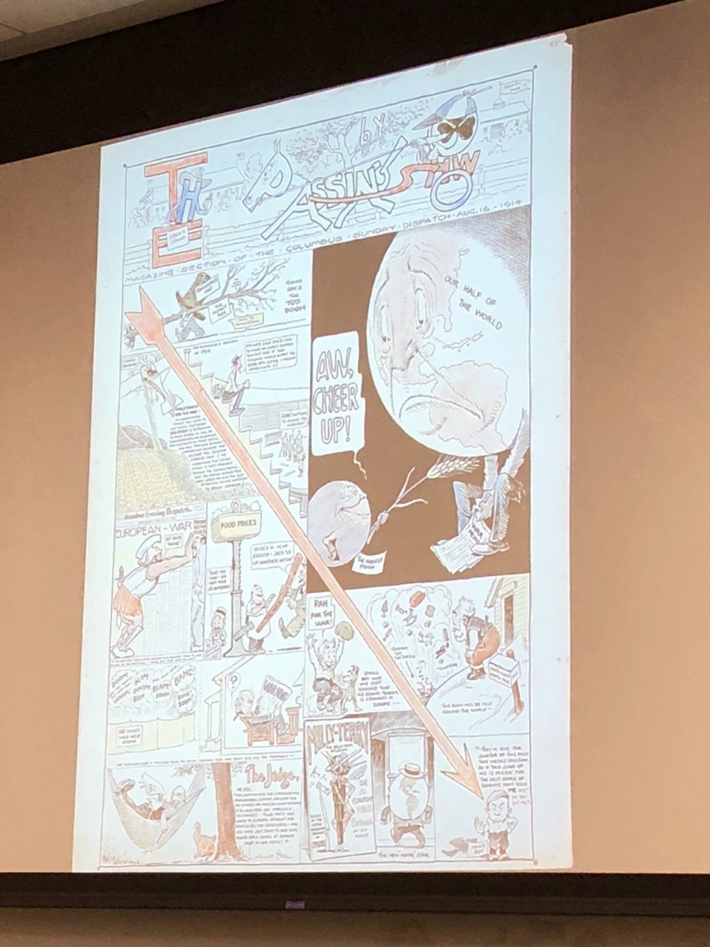 A few shots from this evenings presentation on Billy Ireland and WW1 through his newspaper strips. Fascinating and informative panel by Lucy Shelton Caswell.