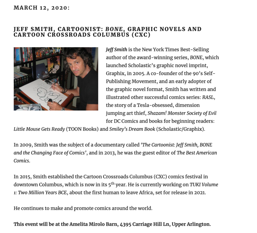 REMINDER – this Thursday March 12th, 7pm. Jeff will be part of the Aldus Society – Columbus, Ohio’s presentation series. Free to the public. Jeff will talk about his pioneering work of the self-publishing movement, the early years of the graphic novel format’s rise to prominence and the ongoing efforts to celebrate cartoonists and Columbus through CXC. More info can be found here: http://aldussociety.com/
