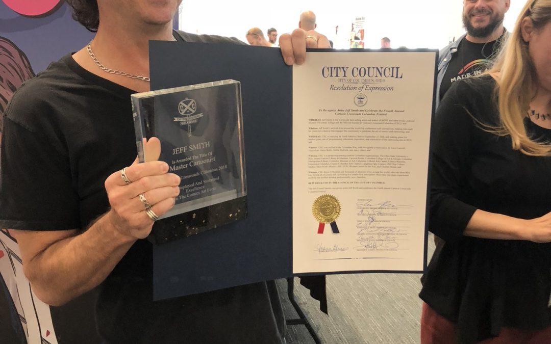 CXC 2018 is a wrap – and ended with a bang! Jeff was given a Master Cartoonist award as well as a City Council Resolution of Expression, celebrating his contributions to the CXC Festival in its 4 year run. We are very honored by the surprise!