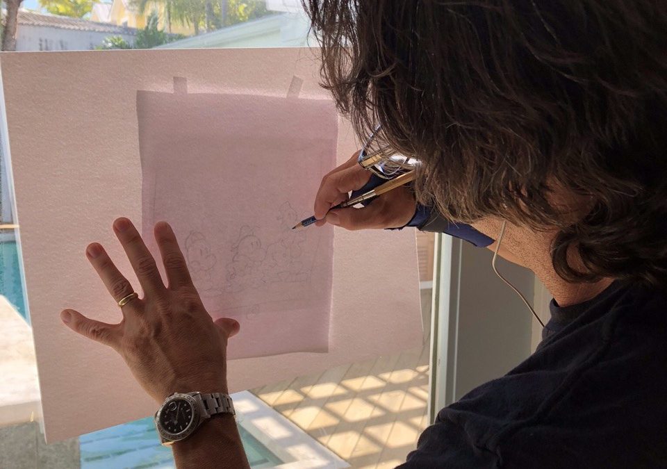 Hey @scholastic @GraphixBooks look at what @jeffsmithsbone is tracing on his makeshift lightbox!