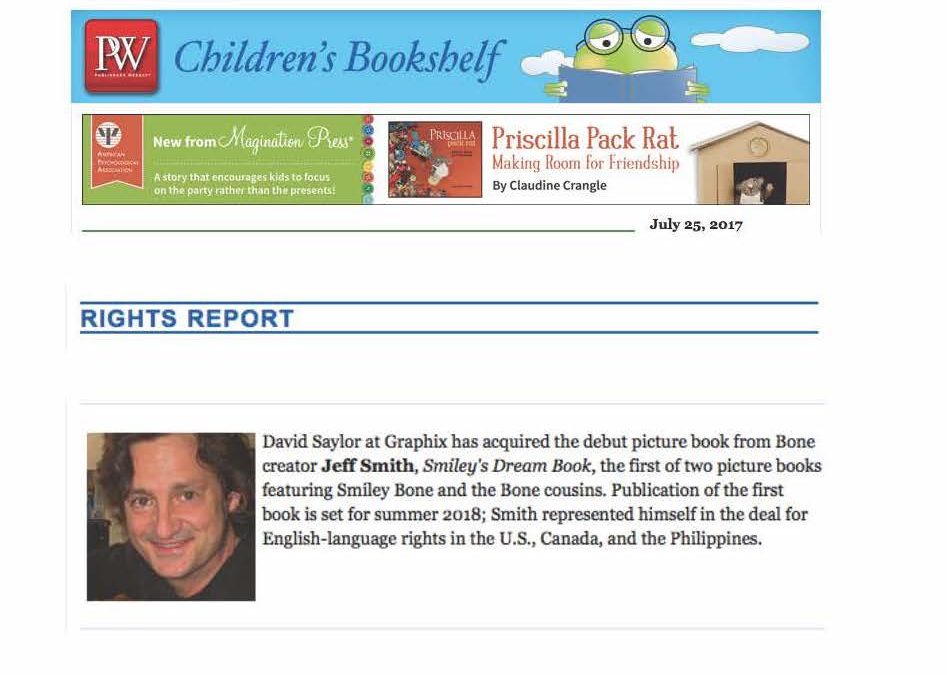Publishers Weekly picked up the announcement about Smiley’s Dream Book! (NOTE: article edited for length)